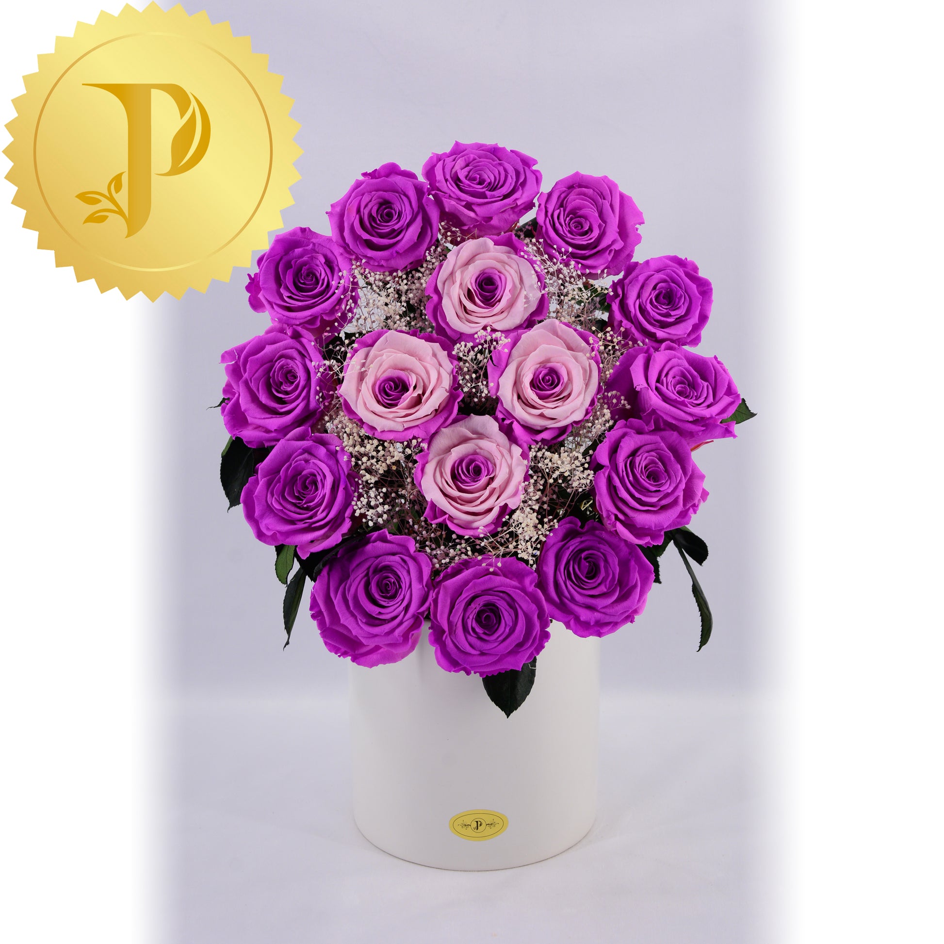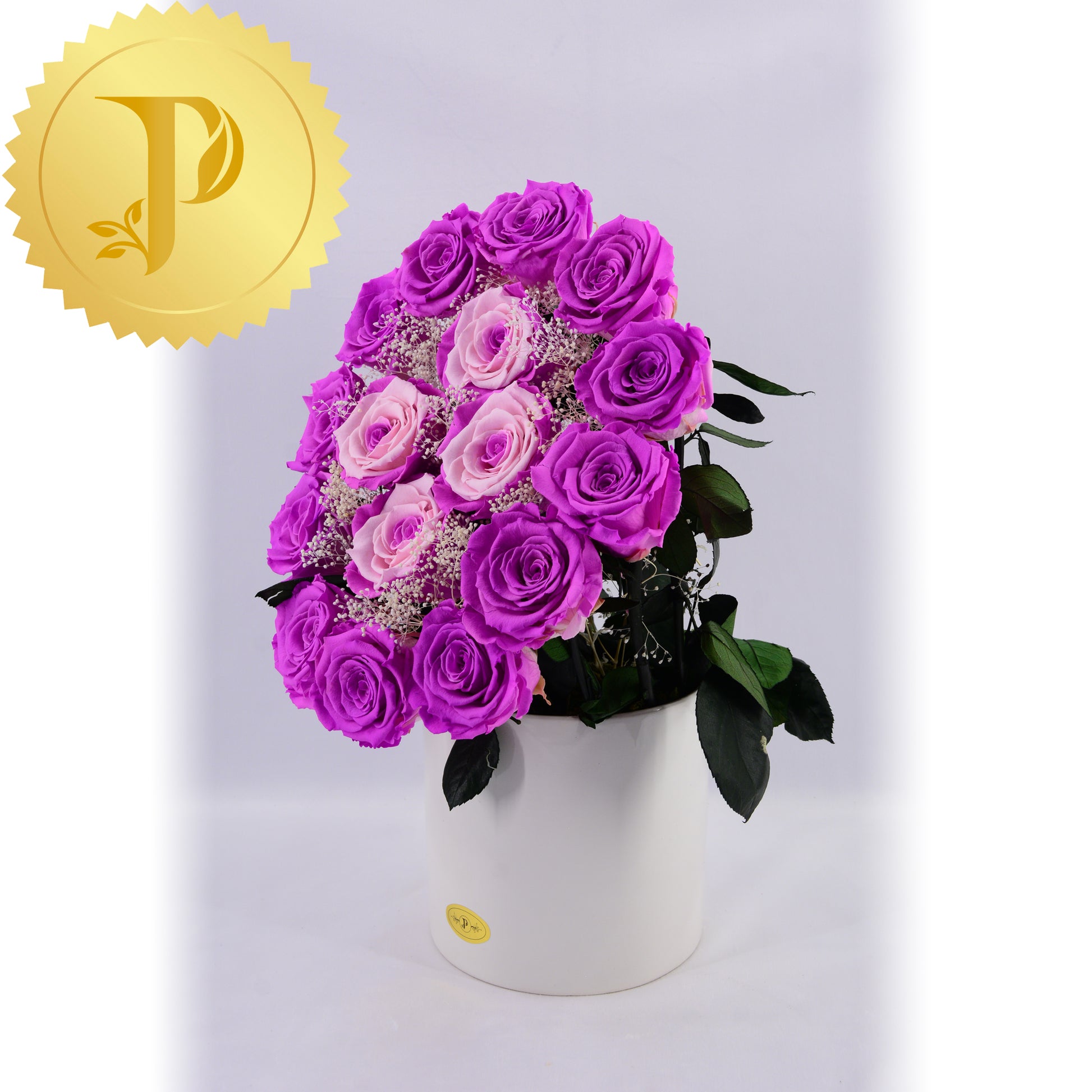 This stylish decoration is placed in a small six inch circular ceramic vase, adorned with preserved moss to give a more natural effect.