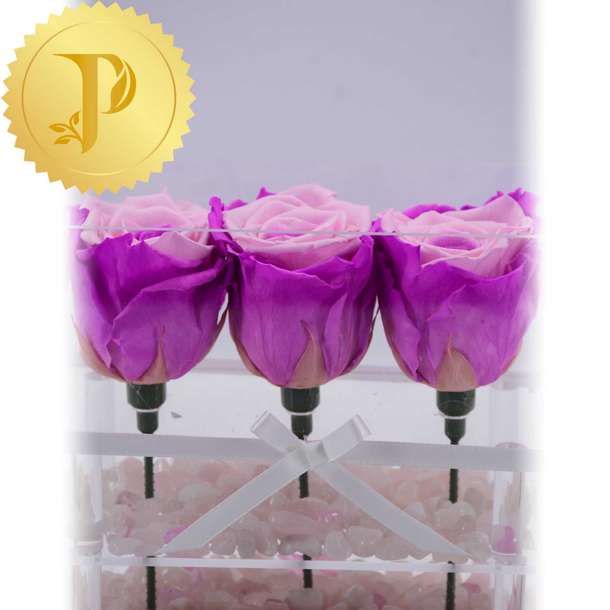 Enjoy this unique set of bi-colour pink roses enhanced by a matching eye in an acrylic box. A great gift idea that can go anywhere in the home…. or the workplace.