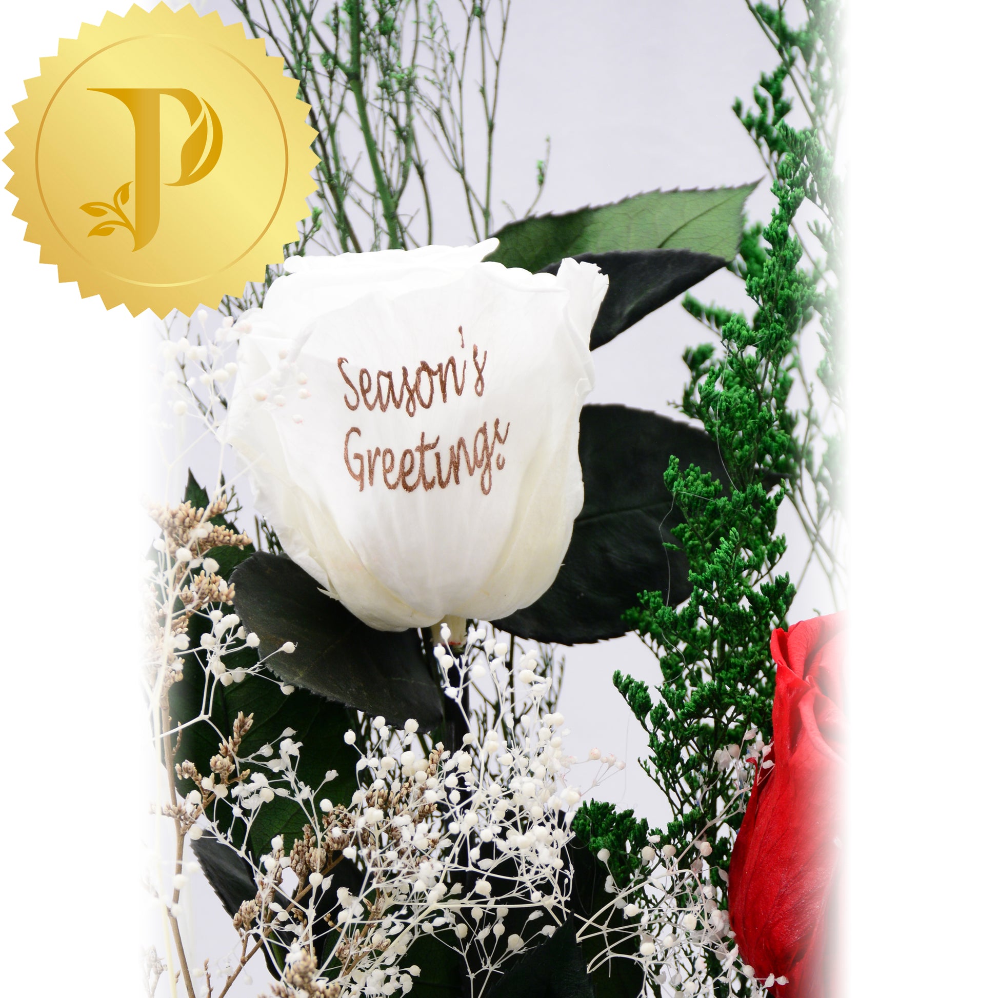 Our printed preserved roses are a new innovative way to celebrate.