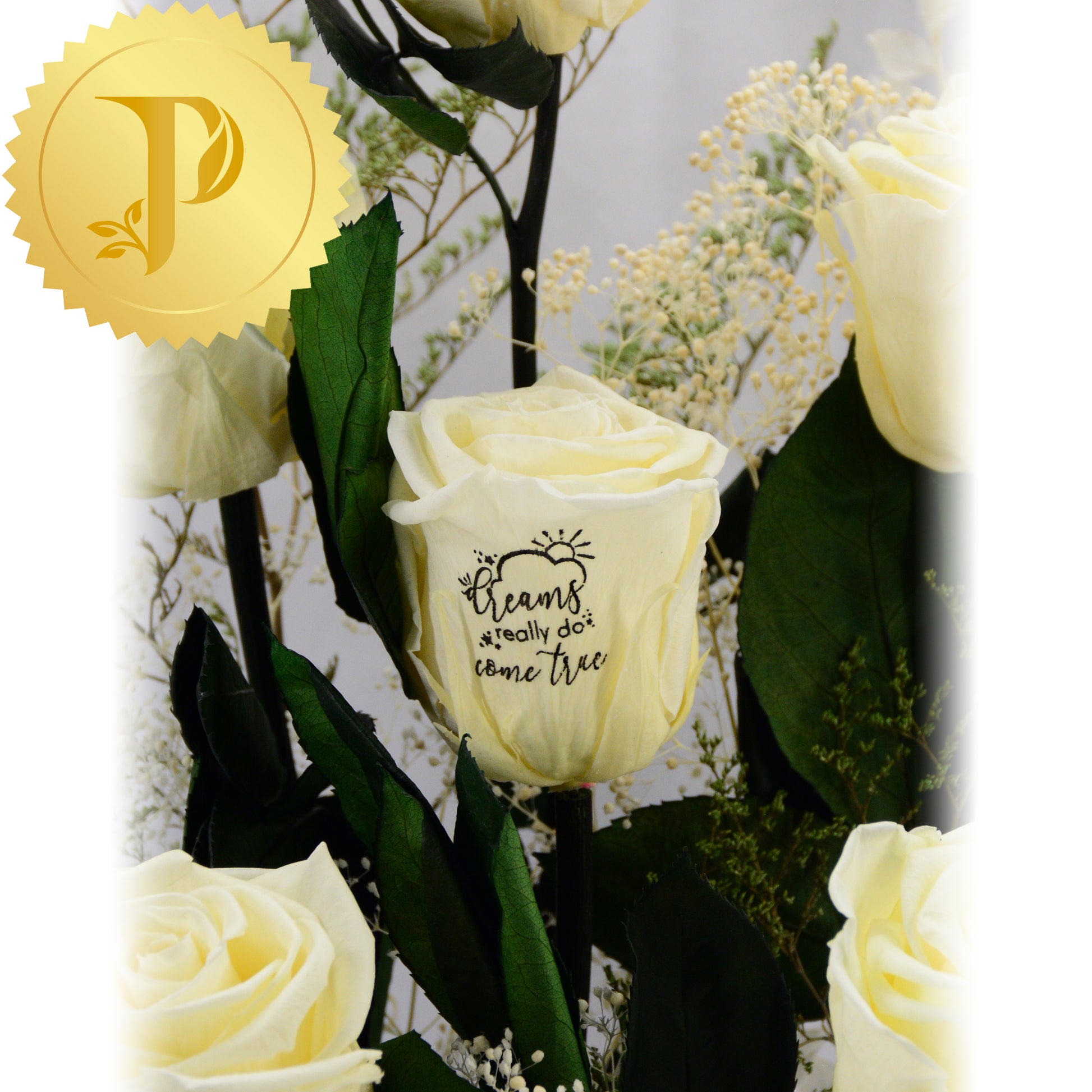Our printed preserved roses are a new innovative way to celebrate.
